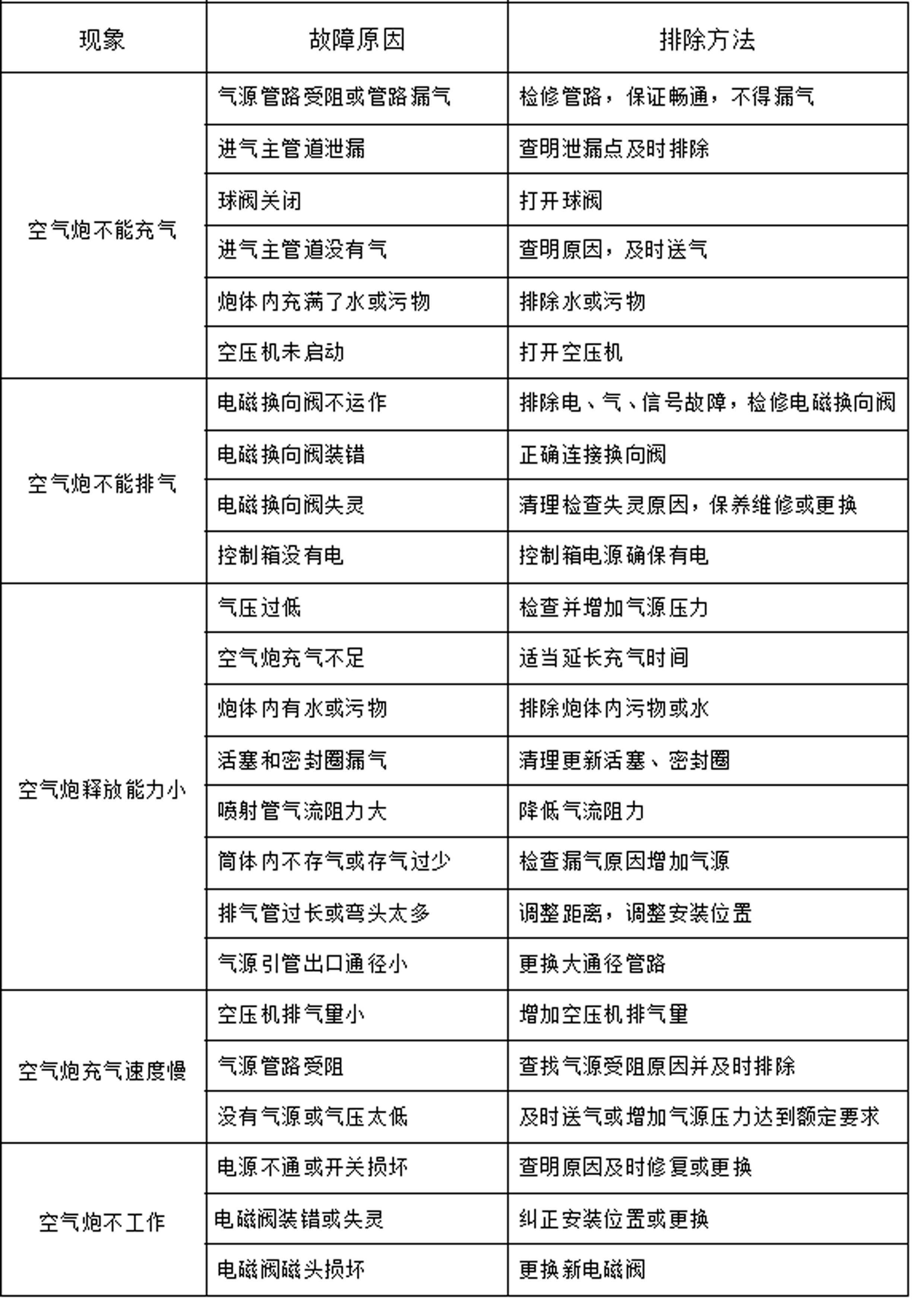空氣炮故障分析與排除